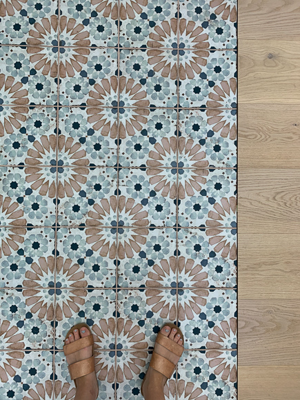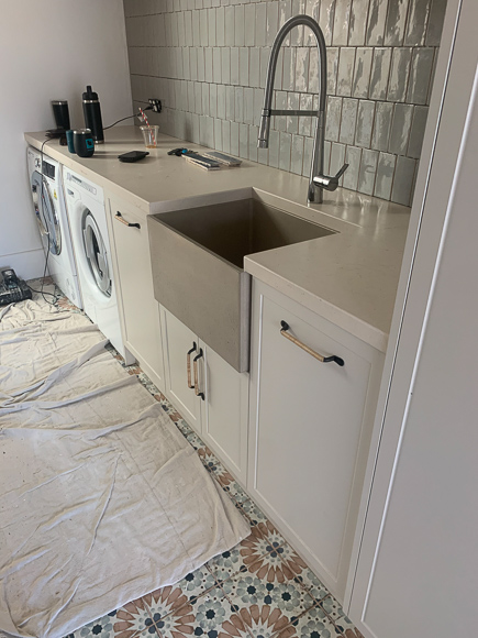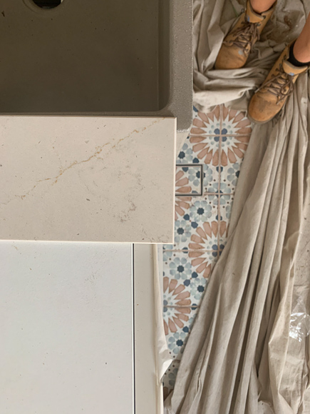 The ‘Serie Grafton Tawny’ patterned tile from Beaumont Tiles was my inspiration for this whole space. I knew I wanted to use it from the moment I saw it! As the tiles are a big feature, I’ve pulled back on colours elsewhere and chosen the Polytec ‘Ascot’ thermo doors in ‘Amaro Matt’. The Jasper team have done a great job on this.