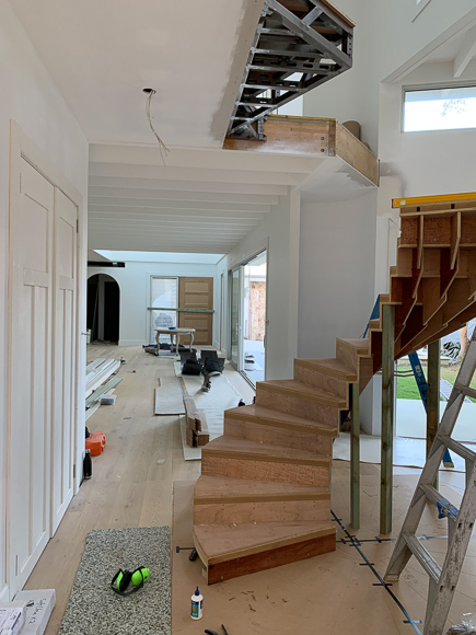 In this space is a walkway along the second level that connects the master bedroom to the office, but the office also has an external staircase which will serve as the primary entrance.