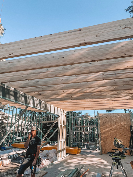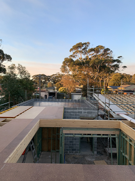 Another wish list item of mine was exposed beams in the living areas. I love the warmth that the beams bring to a space, and felt it would also work functionally. In the framing stage we worked with National Frame and Truss and did a lot of research into our options. Our engineers at Westera Partners recommended the Hyne Timber GL Beam. They are huge and span approximately 7.5m. They have formed a beautiful feature for our ground floor ceiling, and also run outside which has been a nice way to create the indoor-outdoor flow.