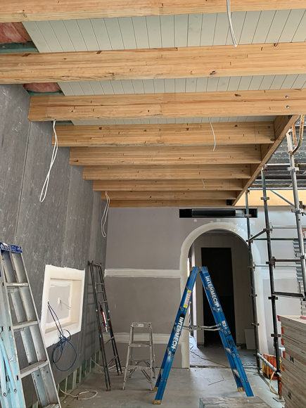 We’ve always had the fireplace on the plans and made provisions for it when bricking in and sheeting the wall, but I had been concerned that it may feel too dominating. But after marking everything out, we decided to lock it in! In particular, we’re going with the Cheminees Philippe Horama Vitreous Freestanding Firebox that we sourced from Cheminee. Completing the installation is Armanno Building Services.