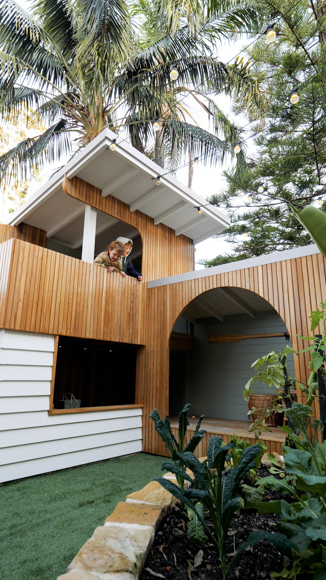 Our whole inspiration around the cubby house stemmed from the main house. A ‘mini’ version of #bluelagoonbuild with similar finishes. The blackbutt timber battens are all leftover from the build of the main house and we’ve used Scyon Linea weatherboards from James Hardie painted in Taubmans ‘Secret White’.