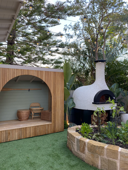Having said that, much of our hesitation to finish this yard stemmed from the fact that it is a small area, yet we knew we wanted to pack a lot in. We didn’t want to rush in and finish it for the sake of it being finished. Over the last 12 months, we thought long and hard about what we actually wanted and would use in this area. For me…it was a veggie garden. For the kids…it was a cubby house, and for Kyal…a pizza oven. But of course, we wanted it to look great and be a space we were proud of, especially given the connection of the rumpus room which is such a hub when we’re entertaining.