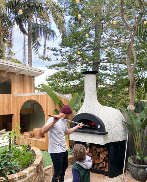 We sourced the pizza oven from Polito Wood Fire Ovens – a family owned business who we actually met back in 2015 on Reno Rumble when we were renovating in Melbourne. We chose the Donatello Medium with a rough cast finish for a more traditional look. We’re definitely amateurs in the wood fire cooking department but looking forward to perfecting this over time and sharing some yummy cook ups with friends and family!