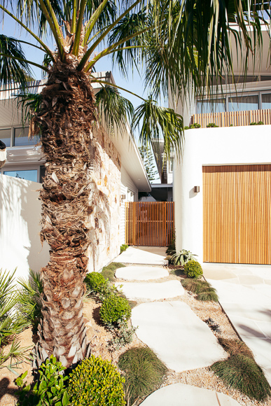 So much of the charm of the original beach shack came from the beautiful big frangipani tree at the front of the block. We love that it continues to provide a green canopy feature from the guest studio. The curved block work on the garage and the studio wall provides the Mediterranean touch we were after and the top garden will eventually grow to spill over the rendered walls. We can’t wait to watch all this lush greenery flourish over the next few years!