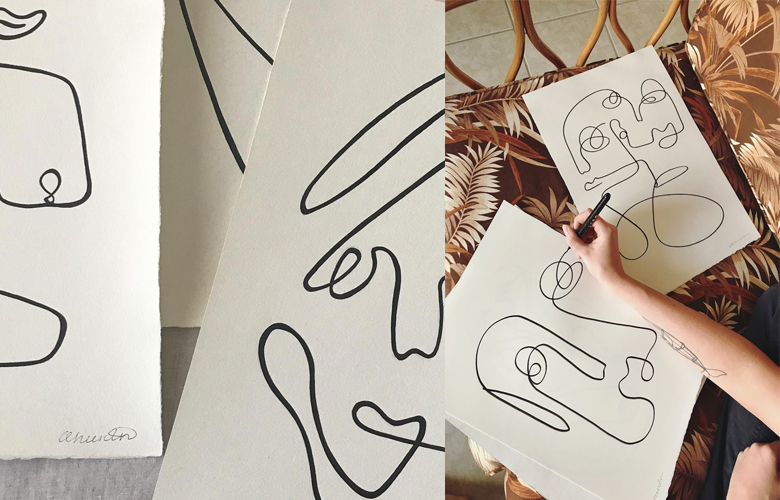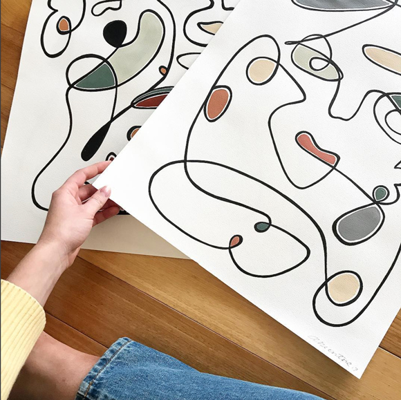 Growing up on the Central Coast I have always enjoyed drawing and painting from a young age, being inspired by shape, colour and nature. I studied Interior Design after I finished school which quickly inspired me to focus more on my artistic abilities. It wasn’t until early last year when I really started sharing my artwork after my sister asked me to create a few artwork pieces for her apartment. I drew her portrait with one line. Art for me is a sense of freedom and being able to express how I feel on paper – especially without lifting my finger. I find it interesting what I create in one continuous line as every artwork is different.