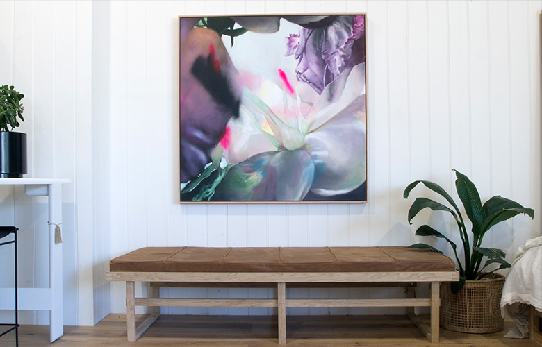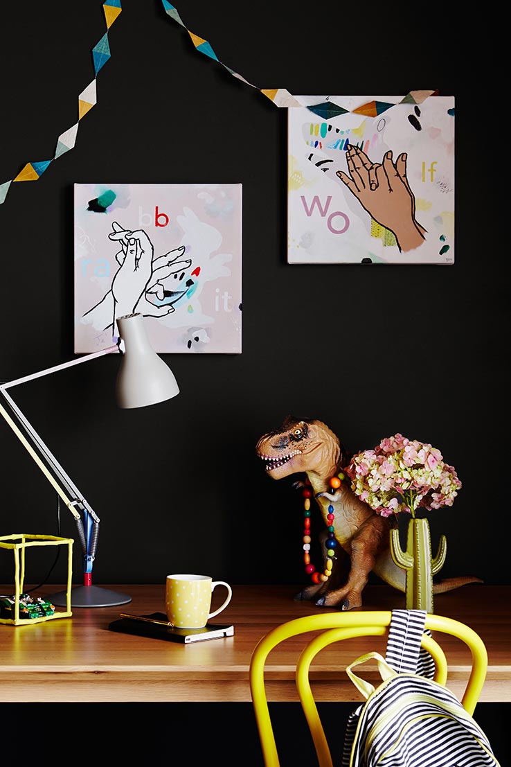 I first came across Georgie’s ‘Shadowlands’ series via Greenhouse Interiors. Having a ten month old means I’m always (subconsciously) on the look out for artwork for little minds. The series features hands performing sign language with a splash of colour and would be perfect for a kid’s interior. Most of Georgie’s work features soft, soothing pastels and contrasting pops of fluro, which makes for individualised pieces to brighten up any space.