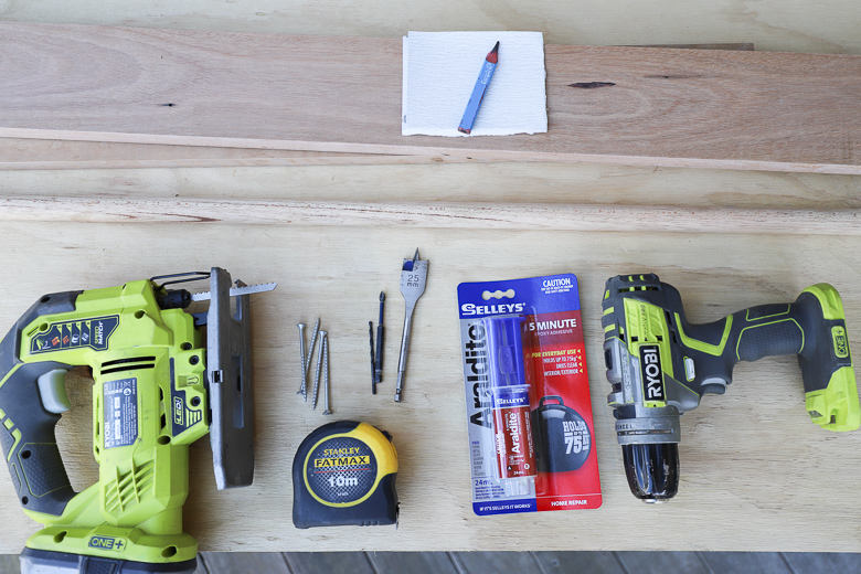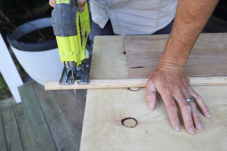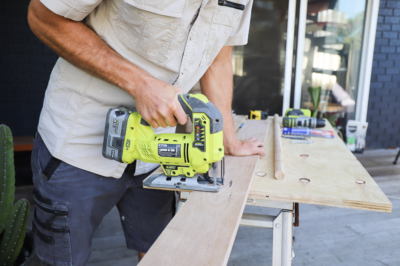 We’ve chosen to curve the edges of our shelf for a decorative touch, and to do so we need to mark the edges. Use anything that’s round to mark out a nice curve. Cut it out using a jigsaw.