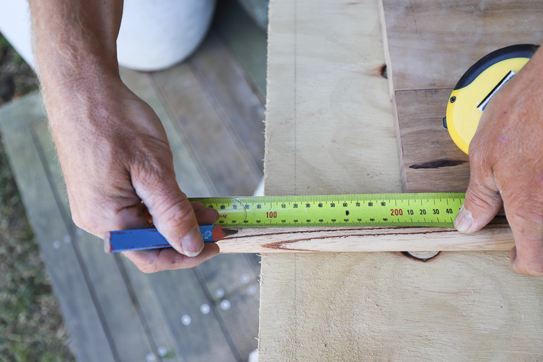 Measure and mark the length of the shelf, and the same for the mounting rail. You can make this any length you like; we’ve chosen to make ours 1 metre long.