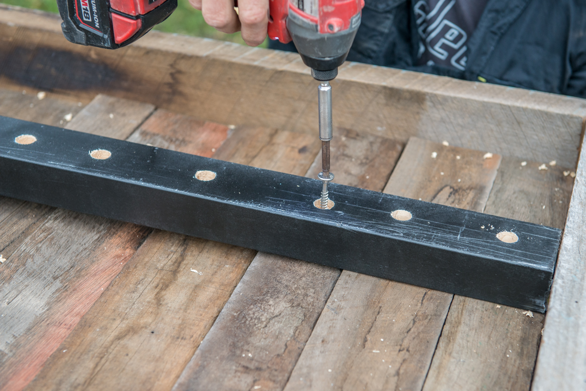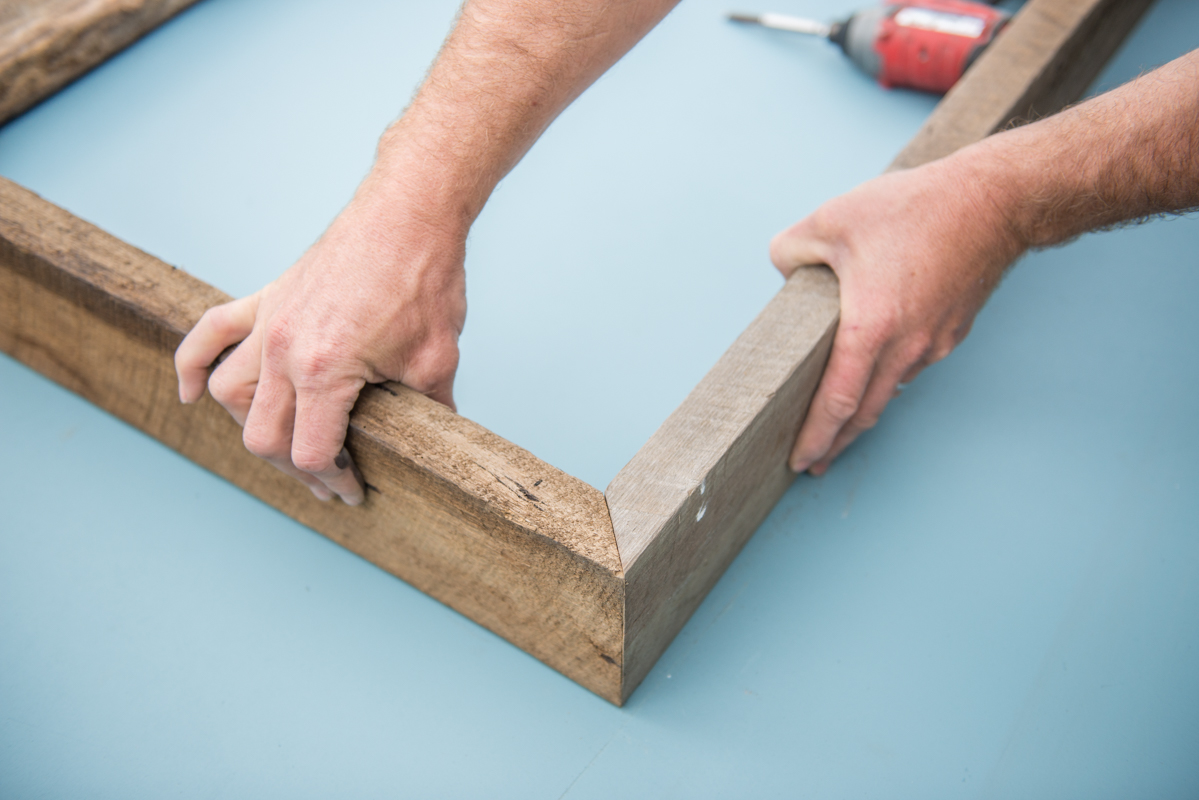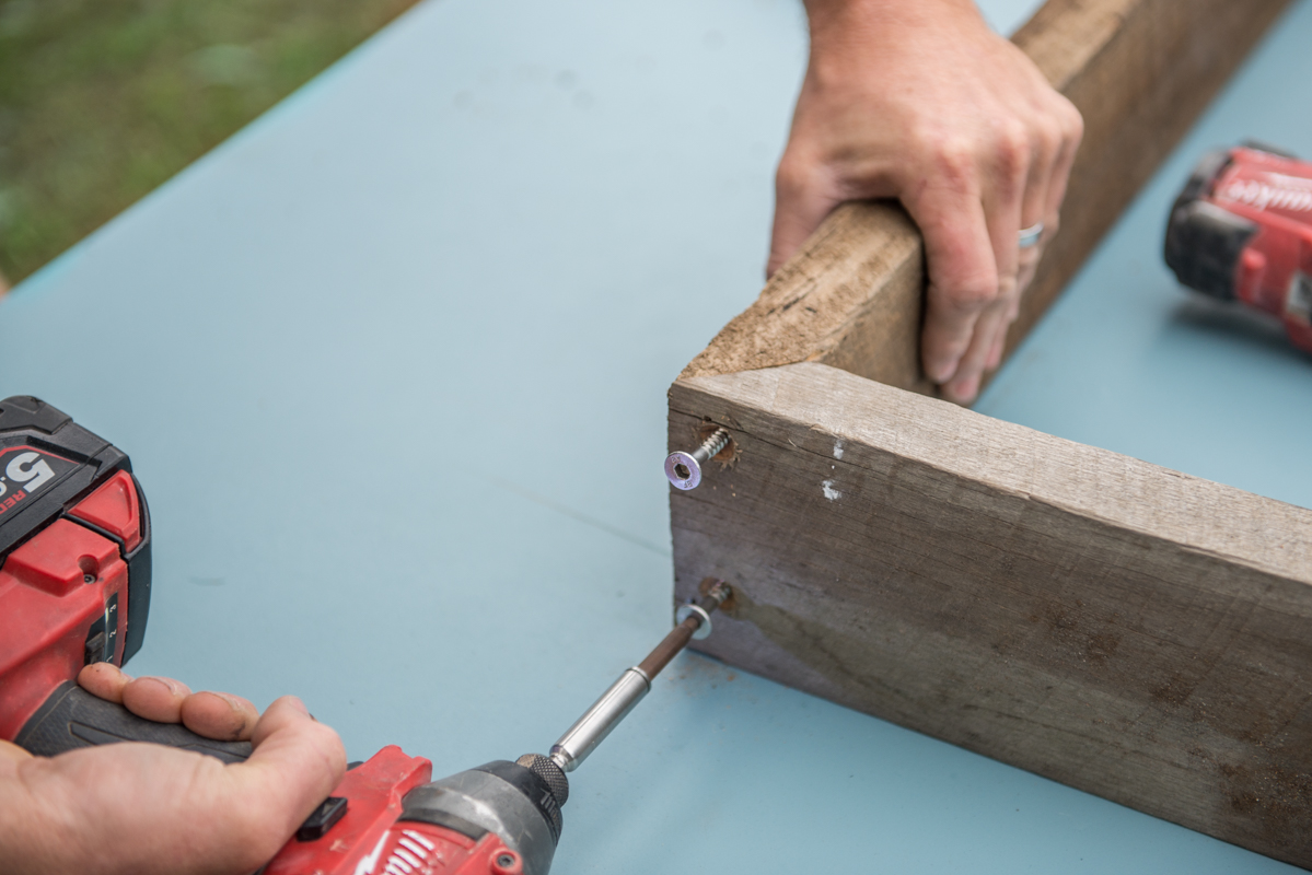 Screw the frame together at each corner. It’s a good idea to pre-drill and counter-sink these screws.