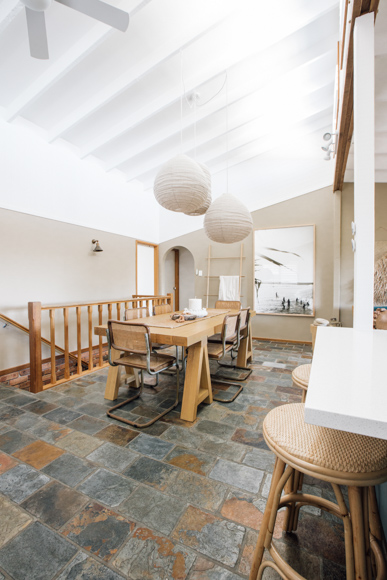 BEFORE: The dining area feels ‘lost’ and needs grounding with an oversized rug of pendant lights