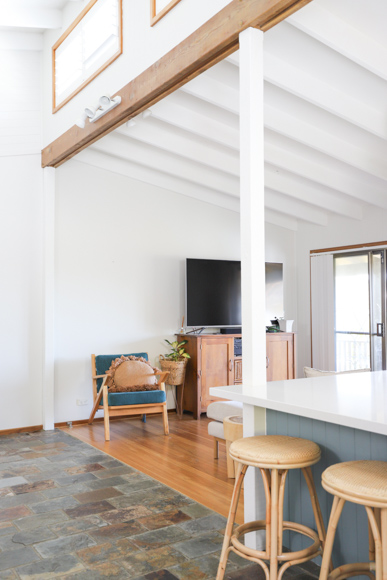 We’ve had our electrician install three pendant lights over the dining table and added some ‘new’ pieces including these AMAZING vintage chairs that I found on the side of the road – quite possibly the best roadside pickup I’ve ever found! A larger dining table for family gatherings and a lower entertainment unit were included as the existing one was too high and it dominated the sitting area.