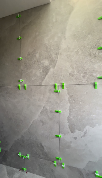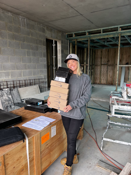 With our tile and bathroomware selections made well in advance (hello lengthy council delays) it’s SO good to see the tiles onsite and ready to go! In both bathrooms I’m using 1200x1200mm Rocksalt tiles from Beaumont Tiles. In House 1 we’re using the Rocksalt ‘White Gold’ and in House 2, the Rocksalt ‘Danish Smoke’. I just love a large format tile in a bathroom; for me the look is sophisticated and seamless, and from a functional point of view there is less grout to clean! Each bathroom will have a smaller feature tile – in House 1 this will run along the window wall and in House 2, behind the vanity.