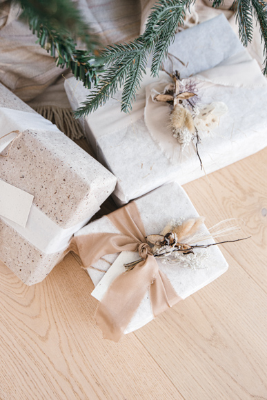 Silk Ribbons on packages under tree : Honeysett House