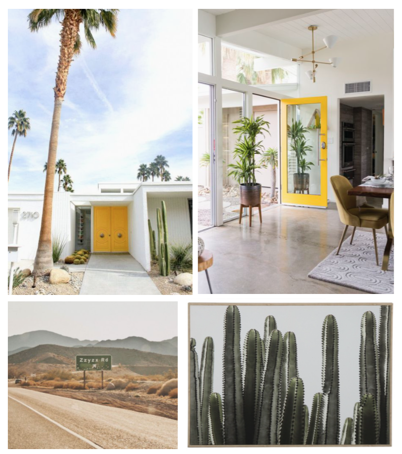 One of the first things they did when they purchased this property, was to paint the front door yellow. They love their bright entry – and wanted it to remain. So with this in mind, the yellow front door was our inspiration for a ‘Palm Springs’ landscape-inspired room makeover!