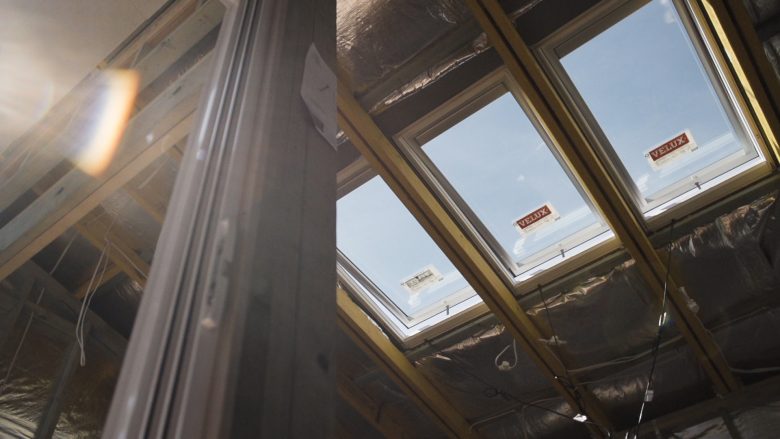 With standard 2.4m ceilings upstairs, we’re keen to add some height with a bank of three Velux over the new kitchen area. This will be the first thing you see when you walk up the stairs so it’s definitely worth the outlay for the wow factor it will give on first impression – not to mention all the natural light it will provide. Kyal and the boys from Central Coast Natural Lighting & Ventilation spend a big two days installing three Velux over the kitchen upstairs, three over the kitchen in the studio, and two in the studio bathroom. They look amazing!!