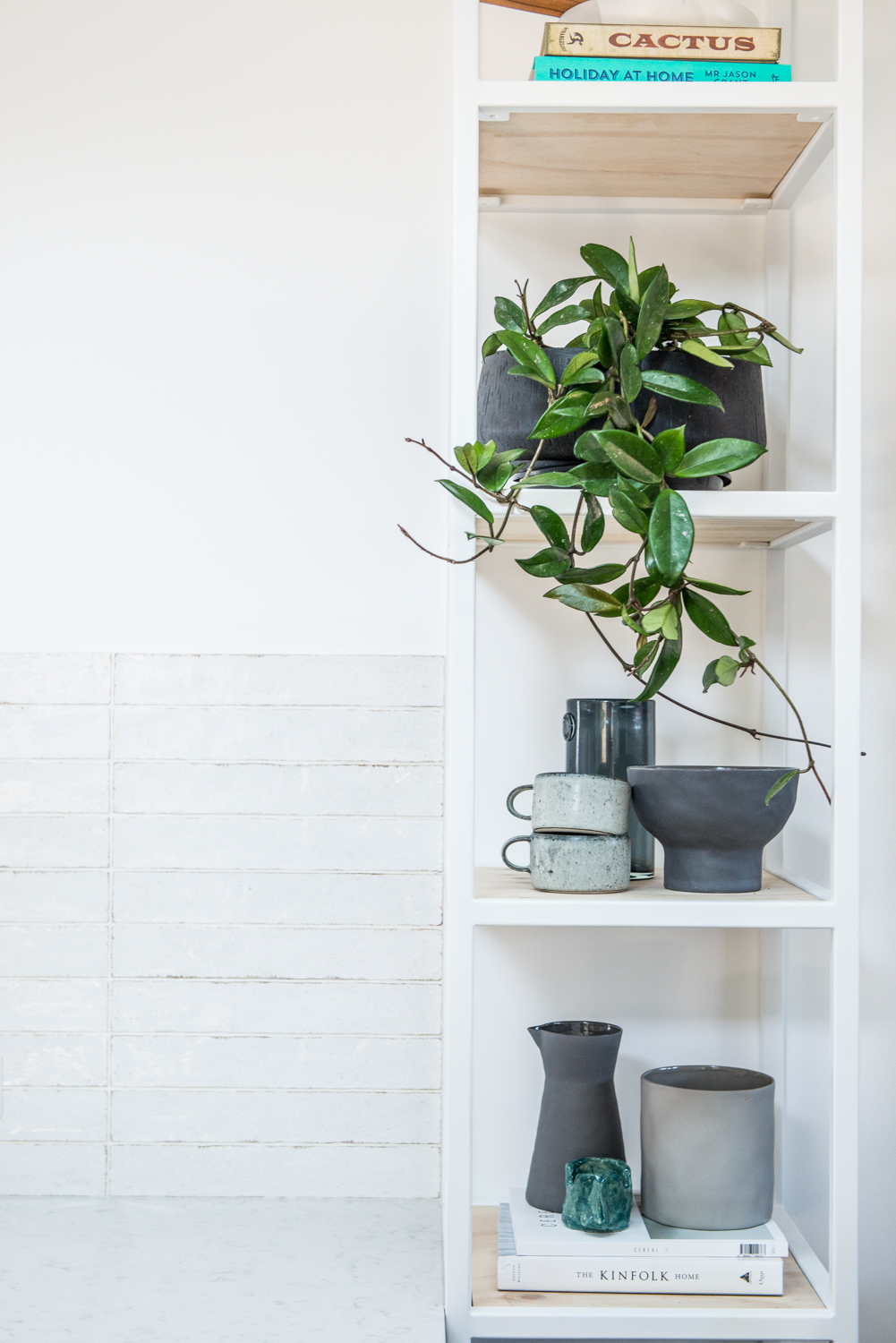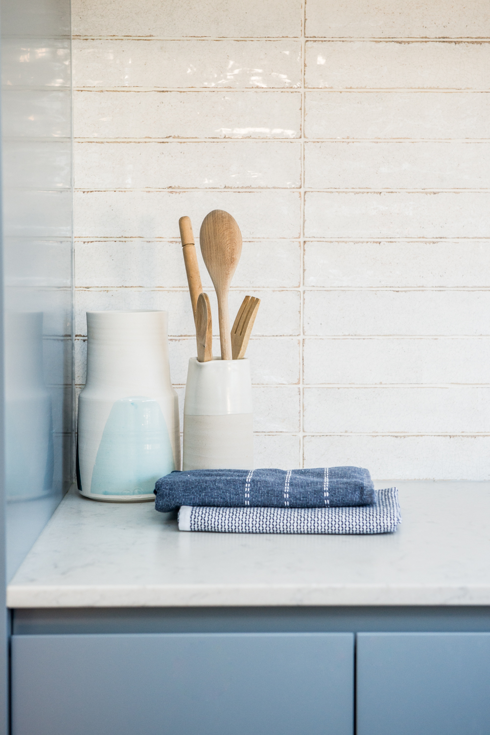 To complete the look, I had to decide on a splash back. It was love at first sight when I laid my eyes upon these Craquel Glaze beauties in white from Beaumont Tiles. I loved them so much I’ve used them in the studio bathroom AND the laundry of the main house (in blue)
