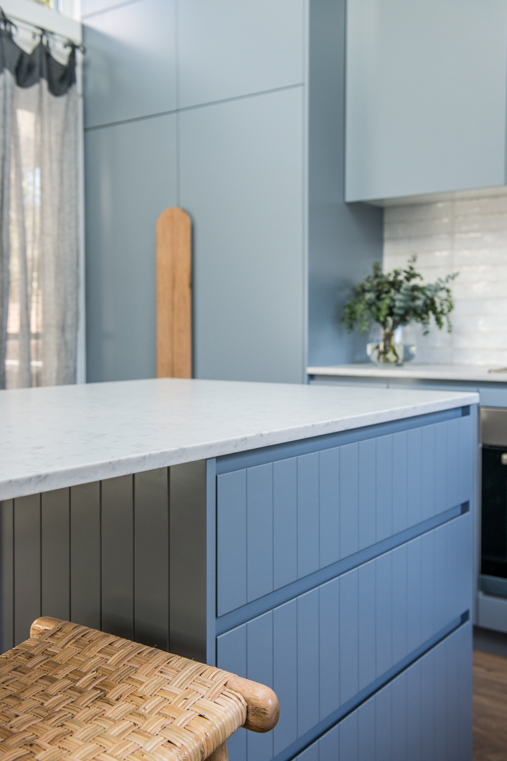 With coastal holidays in mind, we chose Taubmans ‘Iron Gate’ for the cabinetry colour – in a satin finish. It was one of those quick decisions that we just ran with and we couldn’t be happier. So with my flooring sample and colour swatch in hand, I made a trip to Silestone to choose bench tops. I love these bench tops as the finish is matt – not your traditional gloss surface.
