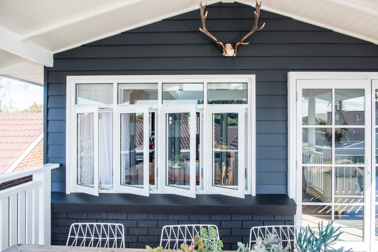 The Wideline casement windows without a doubt make the biggest statement at the front of the house. The thick white window frames look great against the dark wall colour! I cannot wait for summer to sit on this deck and enjoy the sea breeze (not to mention I’ll have a baby in my arms eeeekkkk!!).