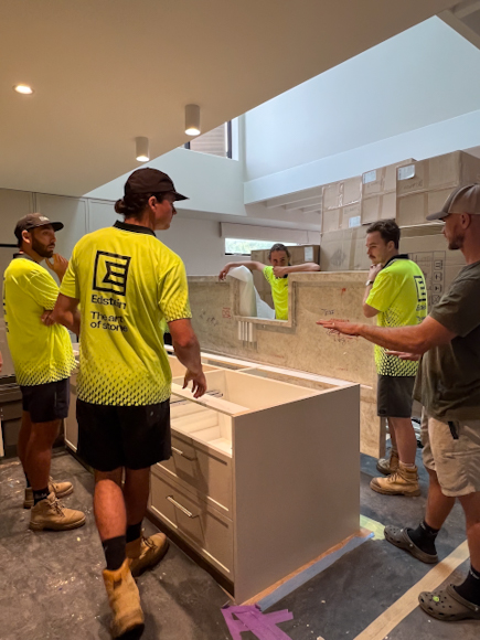 The much anticipated day for stone installation lived up to it’s hype! The Edstein team arrived onsite like an army and it was all very excited. It’s always nerve wracking watching an installation like this, hoping that everything goes to plan and we’re stoked to say that it did! What a difference the stone has made to the look and feel of each kitchen. Our vision is finally coming together…
