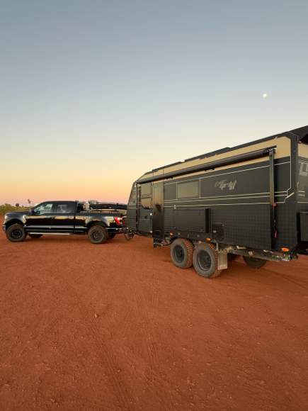 Here we parked the Lotus Caravan on the Ridge Campsite. A great spot right on the sand dune. We left our inflatable boat on the beach all week which made for some great, easy access fishing and snorkelling. The kids and Kyal caught PB squids, and we enjoyed a fire at the campsite each night. We also did a day trip into Coral Bay on a bad weather day to enjoy a barista coffee and a pub meal.