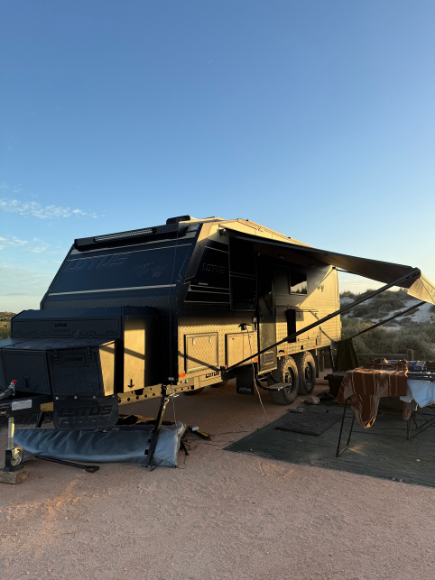 Overall, we spent 4 weeks in the Exmouth region, depending on where we could get bookings. The highlight for us was the 10 days at Kurrajong camp ground where we had the Lotus tucked just behind a sand dune. Again, we left our inflatable boat on the beach all week which made snorkelling and fishing adventures super easy. We fished, surfed, snorkelled and swam with whale sharks! So many bucket list moments! We caught some amazing fish and enjoyed some special cook ups with new friends.