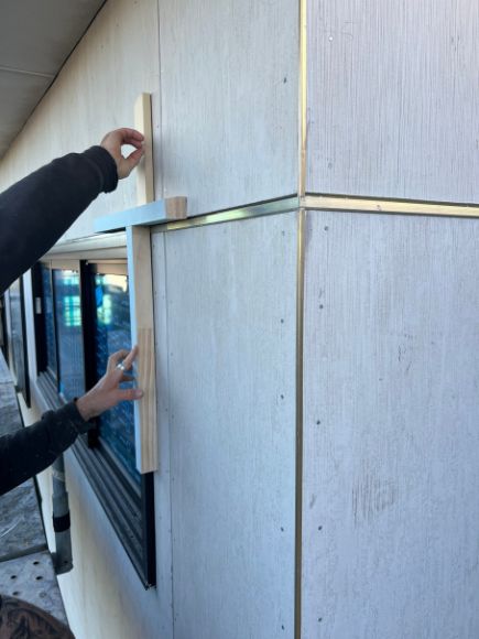 All up we have selected three types of James Hardie cladding for Bay Builds: Hardie™ Fine Texture Cladding, Hardie™ Brushed Concrete Cladding and the Linea™ Weatherboards. All three finishes really compliment each other and bring the modern coastal vibe to life. The Hardie™ Fine Texture Cladding is a pre-textured fibre cement panel that is durable and lower maintenance than a traditional cement render. We’ve used this at the front of the home and to clad the entire upstairs module, and we love the minimalist aesthetic that it gives. In addition, we decided to use battens above the window line as a nod to the old classic surf shacks but with a modern twist.