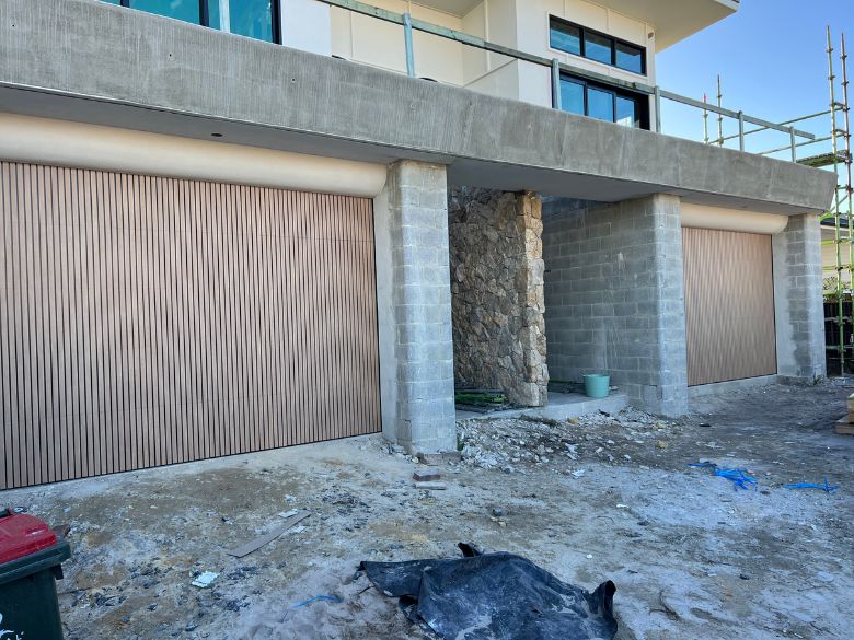 Here Macquarie Garage Doors have supplied and fitted doors using the Knotwood cladding. This is the final stage of being locked up and it’s a great feeling!