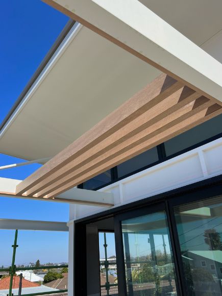 We couldn’t be happier with our material choices for the awning. You get to have that real timber look but without all the maintenance.