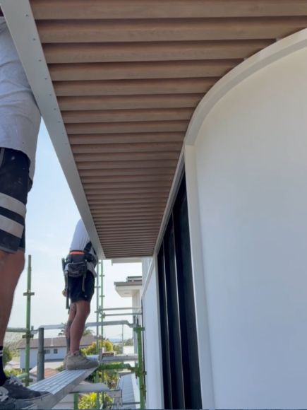 For the battens we chose Knotwood in Sycamore Matt with a 100x50mm profile, spaced with a 50mm gap between them. This offers enough protection from the sun but still lets the right amount of light through. A little tip – when you’re spacing the battens, make sure they aren’t too far apart otherwise it can really compromise on the whole look.