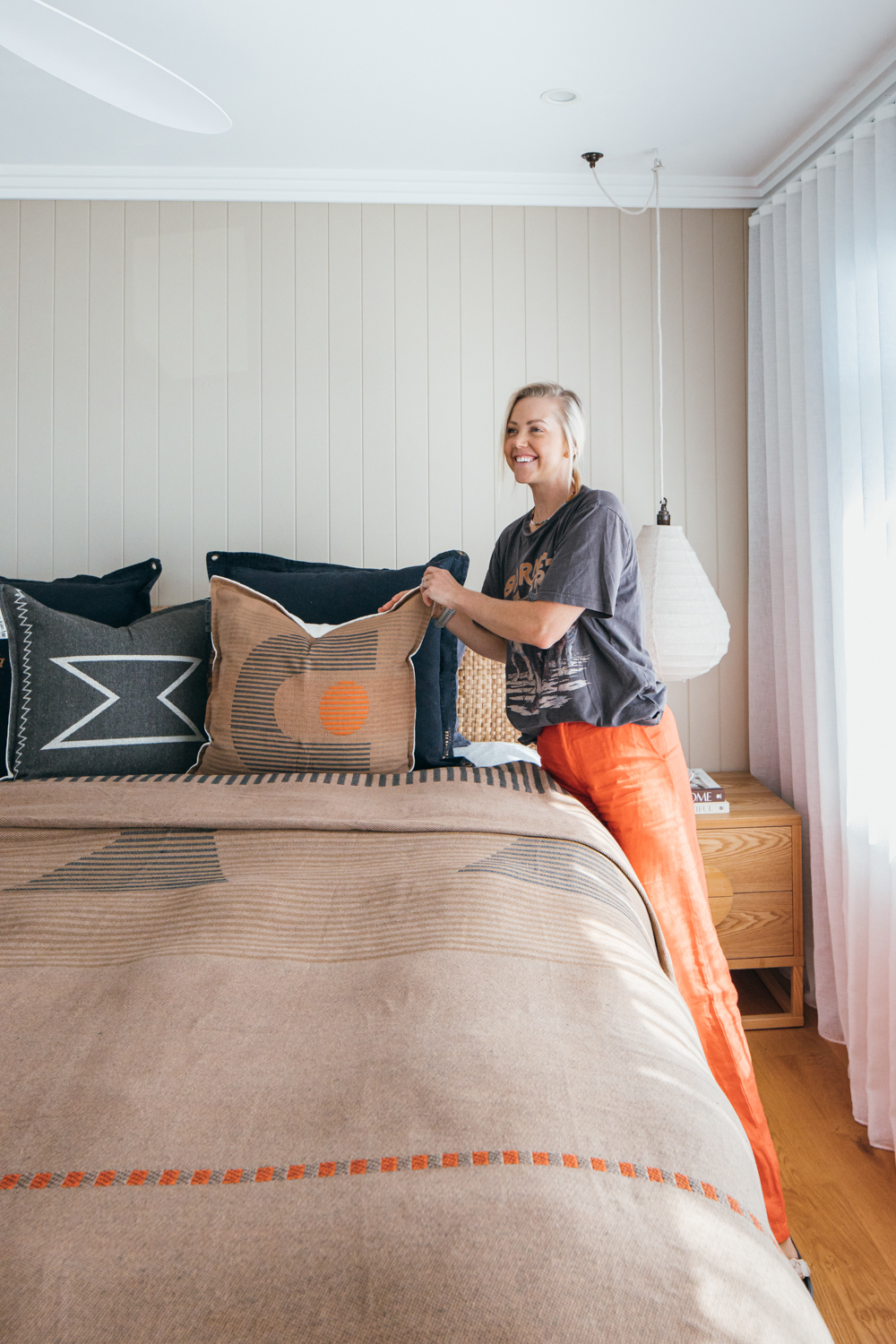 - Keeping overhead lighting to a minimum and using lamps, pendants and candles instantly creates a cosy winter vibe. We also love to burn incense, which fills the space with a luxurious vibe.