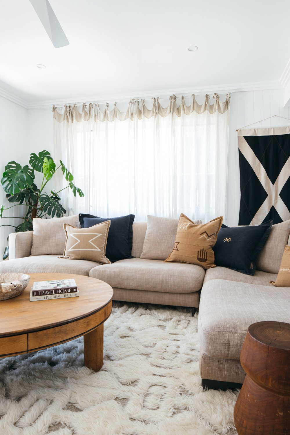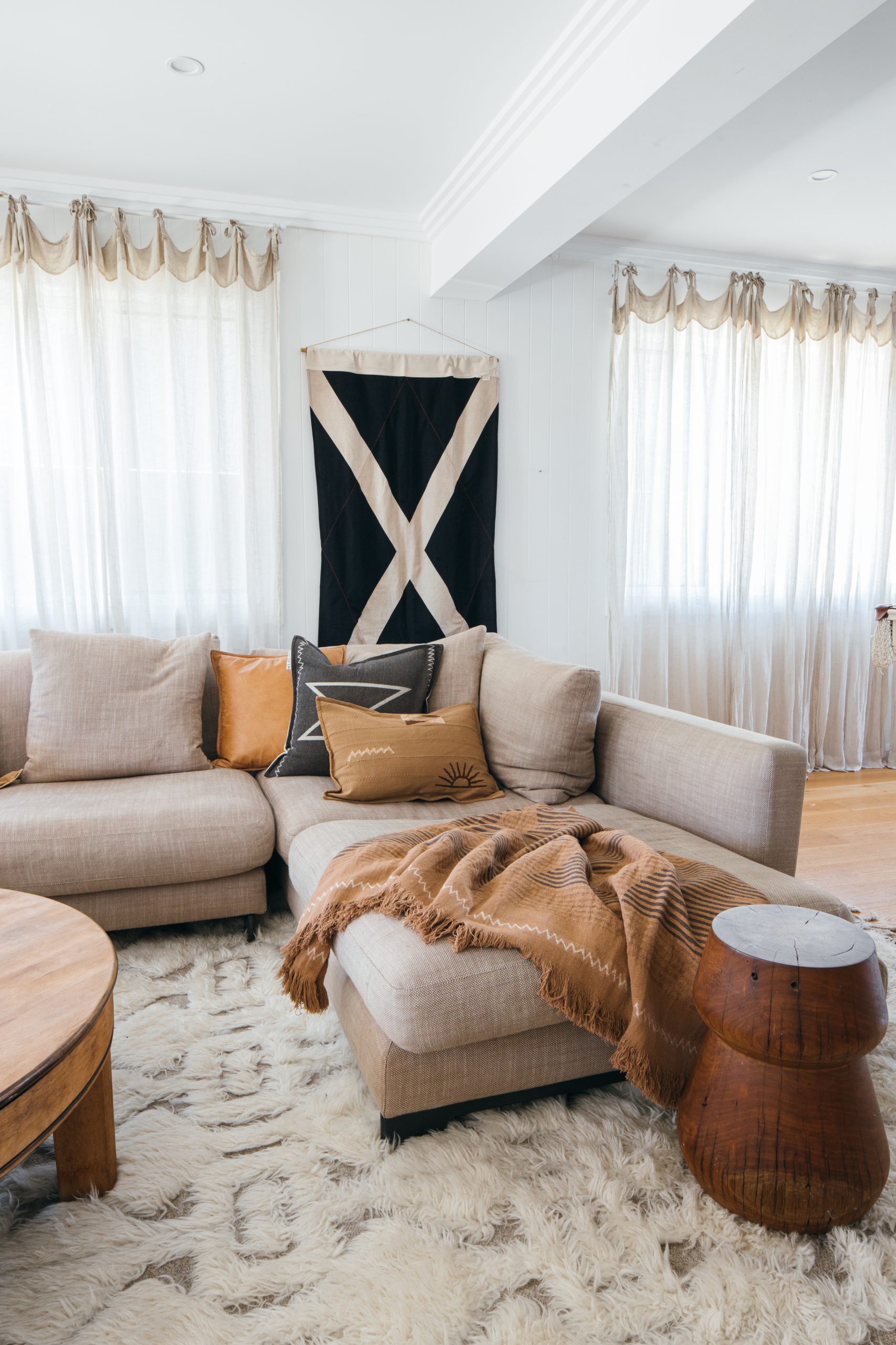 Adding wall art in the form of textural art, material banners and flags or textural wall hangings are a great way of making your space feel cosy and lived in.