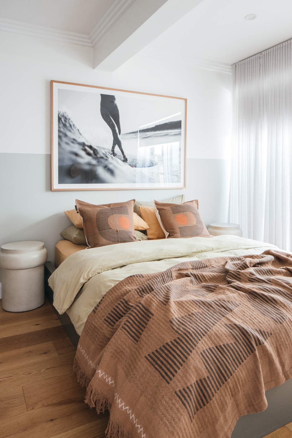 Texture and colour are great ways to build upon the character of a room. This can start as simply as selecting a colour you love and slowly and intentionally gathering pieces you love that build on this colour and texture over time.